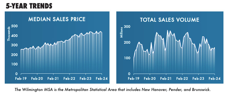 Closed Sales and Pricing Dynamics: Despite the increased activity, closed sales saw a more moderate growth rate of 5.90%, reaching 305 transactions in February. However, the median sales price experienced a more pronounced uptick, rising by 4.65% to $433,000. This increment signifies sustained demand, potentially fueled by factors such as low interest rates and robust buyer confidence.