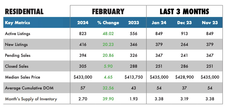 In the dynamic world of residential real estate, staying attuned to market fluctuations is crucial for both buyers and sellers. By delving into key metrics, we can discern patterns, anticipate shifts, and make informed decisions. Let’s explore the trends from February and the preceding three months to grasp the pulse of the market.