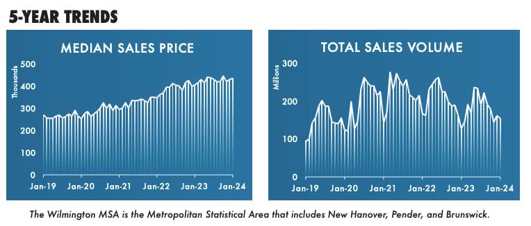 The median sales price for January 2024 stood at $395,000, marking a 4.2 percent increase compared to January 2023. This upward trajectory indicates continued property value appreciation in the Cape Fear region.