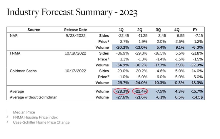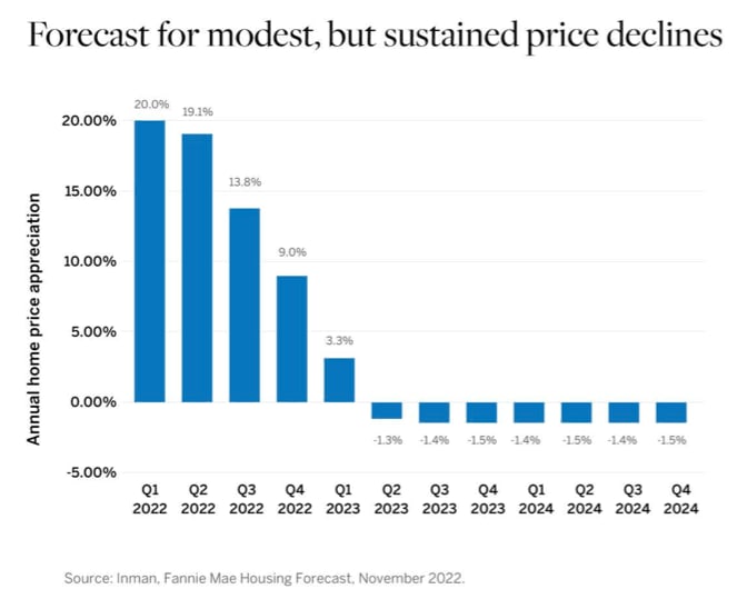- Fannie Mae is forecasting that home prices will fall 1.5% next year and 1.4% in 2024