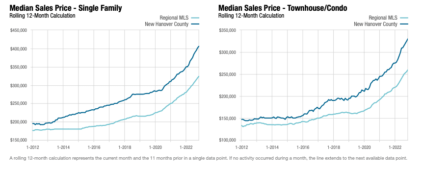 - Median Sales Price for Single Family Homes and Townhouse/Condos have both increased compared to 2021.