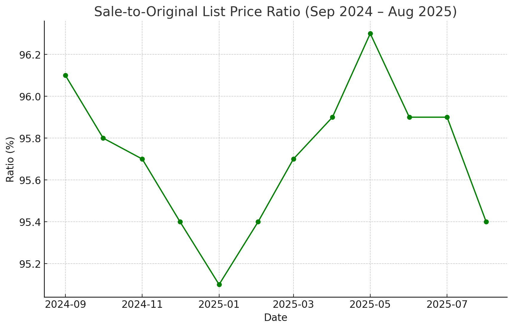 Figure 3. Sale-to-Original List Price Ratio (Sep 2024 – Aug 2025). Sellers enjoyed stronger negotiating power in spring.